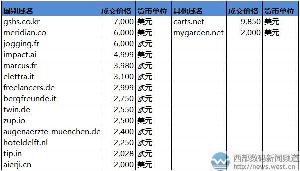 国别域名方面,本期表现平平,成交价最高的域名是韩国国家域名gshs.co.kr,价格为7000美元。字母gshs是“全球学校学生健康调查”的缩写,也对应英国的George Stephenson高中,官网域名为gshs.org.uk。