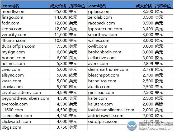 西部数码(west.cn)7月19日消息,最新一期的sedo交易榜出炉,本期上榜的域名共有61个,其中卖价最贵的是域名mondly.com,成交价为25,000美元,约合人民币17万元。