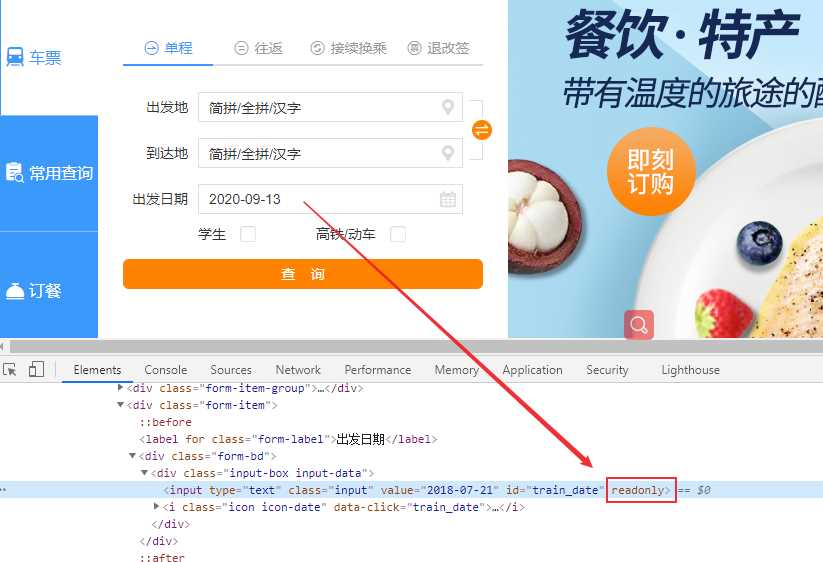 大部分时间控件都是 readonly属性,需要手动去选择对应的时间。自动化测试中,可以使用JavaScript代码取消readonly属性。