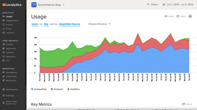 Google Analytics(分析),Kissmetrics和Mixpanel主要关注网络分析,并具有集成应用分析能力,Localytics则是关于移动应用分析。Localytics是了解用户如何与应用互动的理想选择。它可以告诉你,每个用户打开应用程序的频率,花费了多少时间使用,以及应用程序中的哪些活动或内容得到了用户的最多关注。