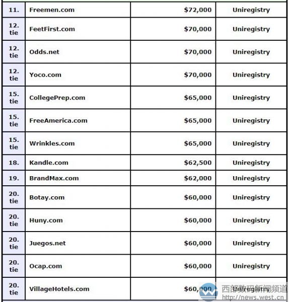 其他域名交易情况详见下表: