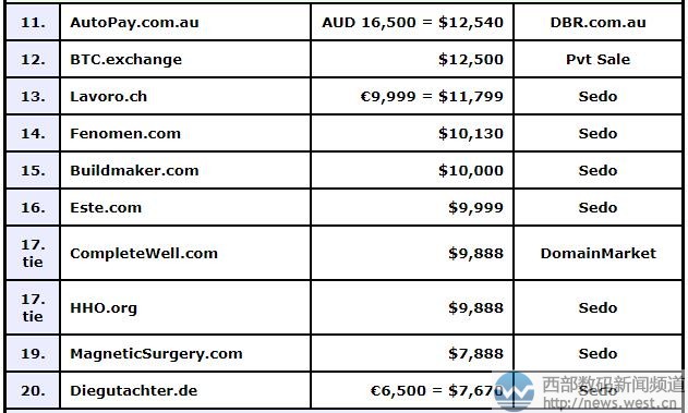 其他域名成交情况,详见下表: