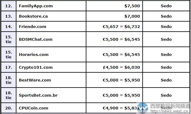 除此以外,“百搭明星”JokerStar.com以13,455美元的成交价排在DN榜第五,该域名适合搭建明星网站以及游戏平台。随后是“休因斯”HeWins.com,成交价为12,000美元。Hyper.ai也拍了1万欧元,“hyper”有“宣传人员、亢奋”的意思,“AI”指代“人工智能”。