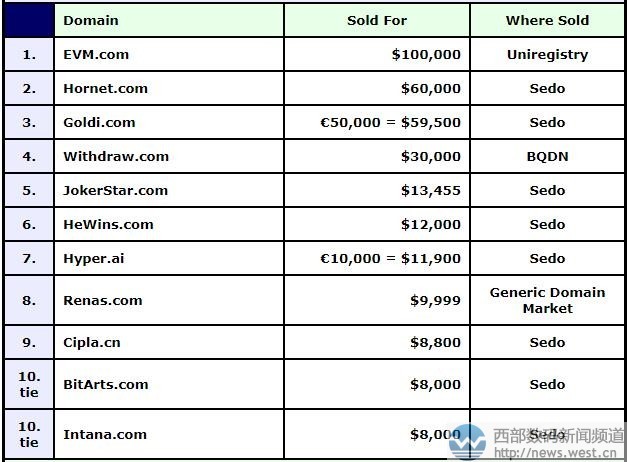 来源西部数码新闻资讯:三字母再次拿下DN榜冠军!域名EVM.COM以65万元成交