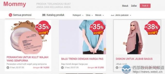 现在访问域名mommy.com,打开的是一个母婴购物网站,提示用户选择印度尼西亚或是越南语言,看来网站主要是为印尼和越南服务的。据网站显示,mommy出售各类母婴类服装、服饰和一些其他相关的产品。