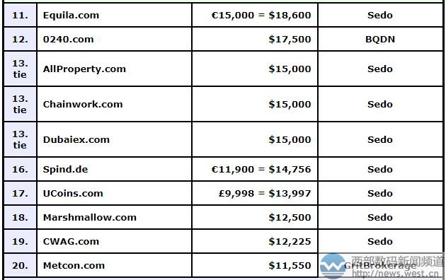 其他域名交易情况,详见下表:
