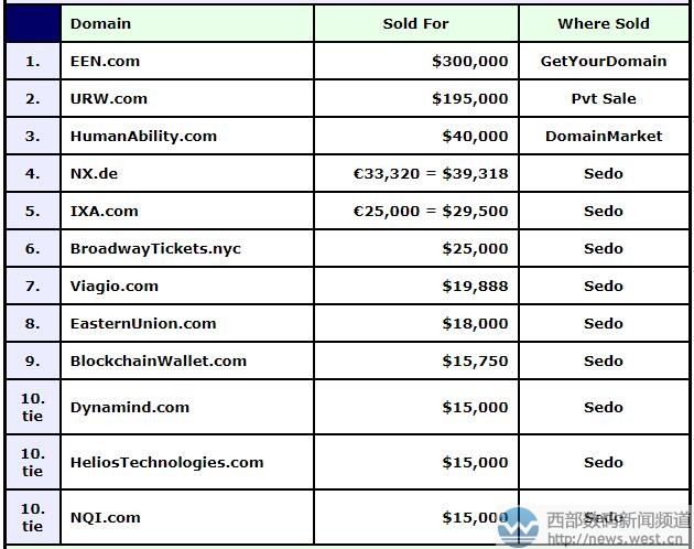 来源西部数码新闻资讯:DN榜:多个三字母域名成交!ENN.COM以191万元夺魁