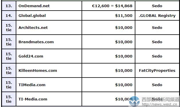除此以外,榜单上也还有不少的好米,如:三字母ixa.com以29,500美元成交;英文域名broadwaytickets.nyc拍出25,000美元,viagio.com、nqi.com、Global.global、Gold24.com、timedia.com等域名均拍出不错价格。