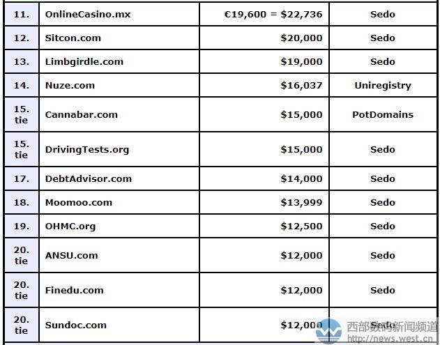 其他更多DN榜域名交易情况,详见下表: