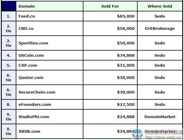 来源西部数码新闻资讯,原文链接:国别域名大出风头:feed.co和CBD.co六位数领跑DN榜!