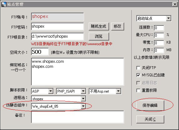 3、如果您的站点开始设置了伪静态,请点击“编辑站点”,再点保存编辑即可。
