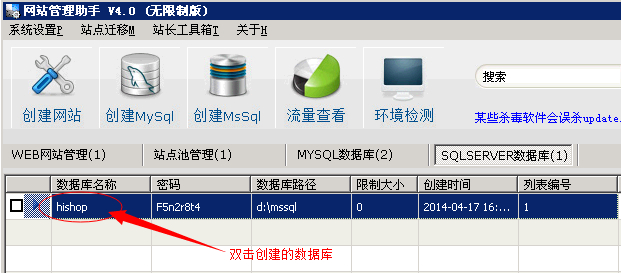 1.打开我司网站管理助手,点击“创建mssql”