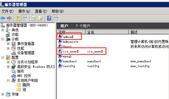 以Windows为例,右键计算机 -> 管理 -> 查看本地用户和组,如果用户或用户组带有$符号,说明该用户/用户组被隐藏,很有可能被黑了。如下截图