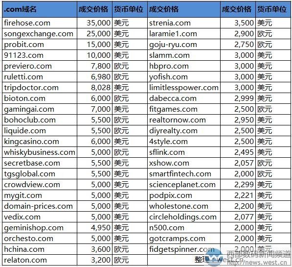 来源西部数码新闻资讯,原文地址:Sedo榜:行业米“消防水带”以27万元成交!多个国别域名表现不俗