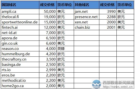 另外,芬兰域名thelocal.fi拍出19,000欧元,约合人民币14万元。该域名有“当地”的意思,适合搭建本地相关平台;德国域名sportwetteonline.de和安圭拉岛域名fintech.ai则分别以1.5万欧元、1.2万美元结拍。