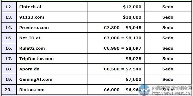 其他DN榜域名交易情况,详见下表: