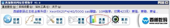 如果要查看IIS里每个站点的流量情况,可以打开网站管理助手,点击“流量统计”,如图: