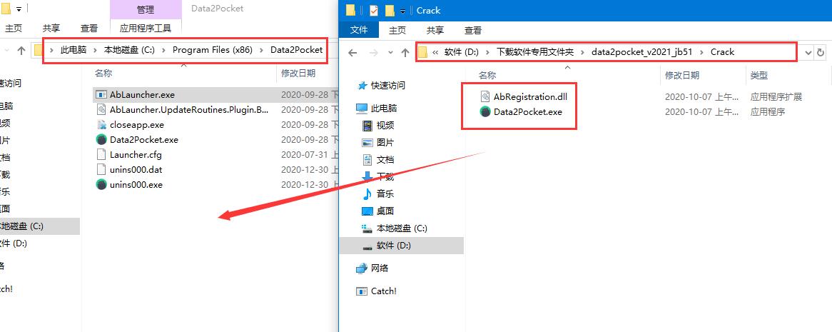 6、将软件包内Crack里的补丁复制到软件安装目录下(默认c:/Program Files(x86)/Data2Pocket)