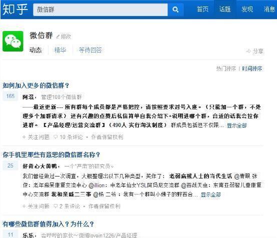用知乎搜索微信群的结果