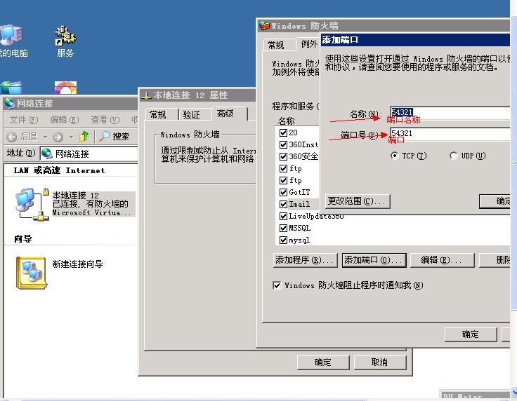 首先点网上邻居右键属性》本地连接右键属性》高级》设置》例外》添加端口,输入您要开启的端口,端口最大值不超过65535.如图