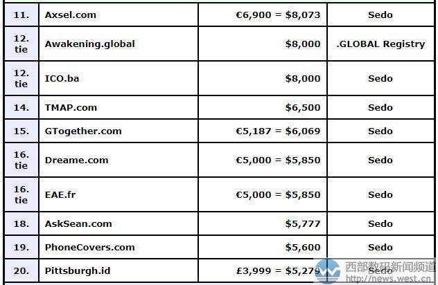 其他域名交易情况,详见榜单: