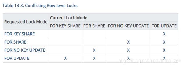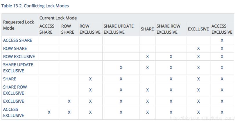 和SHARE,SHARE ROW EXCLUSIVE和ACCESS EXCLUSIVE锁冲突。