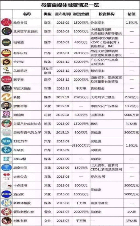 很多人会问她是如何做到?为何短短一年间可以从默默无闻做到价值千万?那我们在看看其他的例子。公众号:十点读书,A轮融资500万,估值3000万,只有25万精准粉丝;公众号:玩车教授,运营三个月后,粉丝达到10万,不仅签下第一笔10万元的广告,还拿到1500万的天使投资,B轮融资估计达到6个亿。而这些只是冰山一角。