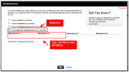 5、在弹出层的输入框中填写您的域名DNS服务器地址,点击【OK】即可完成设置。