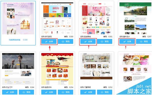 第二、点击“建站管理”,进入网站编辑后台,在众多样板中选择一个喜欢的样板,进行安装。