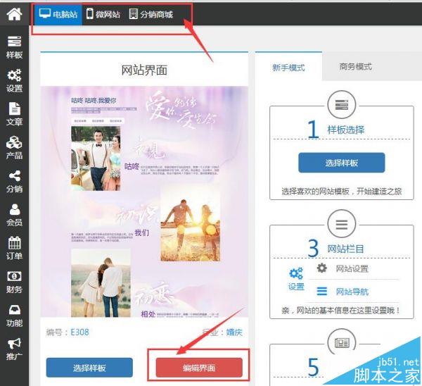 第四、样板安装完成之后,选择“电脑网站”或“微官网”抑或“分销商城”,点击“编辑界面”,进行编辑。