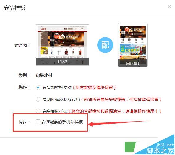 第三、安装样板的时候,选择“同步安装配套的手机站样板”,即实现电脑站、手机站同步。