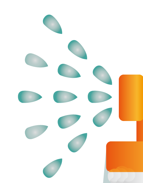 6、继续使用青色填充喷雾器前端出来的液体路径,并用网格工具一一点击让其呈现青色的渐变效果。