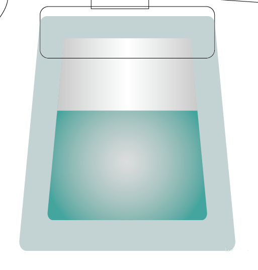 2、设置灰色与灰白色搭配填充喷壶的主体结构,再用青色填充液体的路径。效果如图。