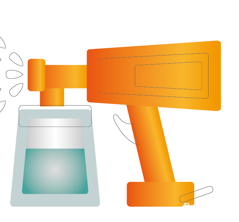 7、画出喷雾器的手柄开关结构件的轮廓,并用蓝黑色的渐变填充,完成喷雾器图片设计。