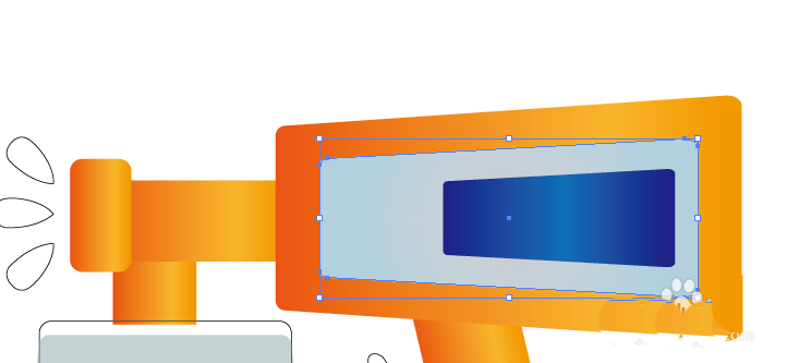 4、用橙色的渐变填充喷雾器的管状结构件的路径,让其呈现橙色立体效果。