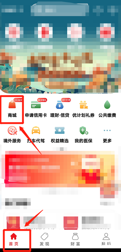 2、在首页点击商城