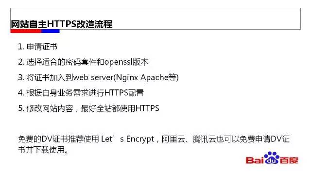 总结以上两种方案,自己做HTTPS的改造可以贴合自己的业务做定制,比较灵活,问题是对技术能力要求高,成本和复杂度也很高,如果网站业务比较特殊的可以选择自己做。