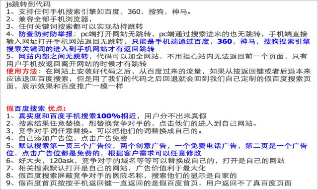 第二个风险:搜索的返回劫持。就是常见的假百度,用户通过访问百度点击第三方站点,在浏览器上做回退的时候,跳到一个假百度,这样的情况对用户伤害极大,是百度坚决不允许的。
