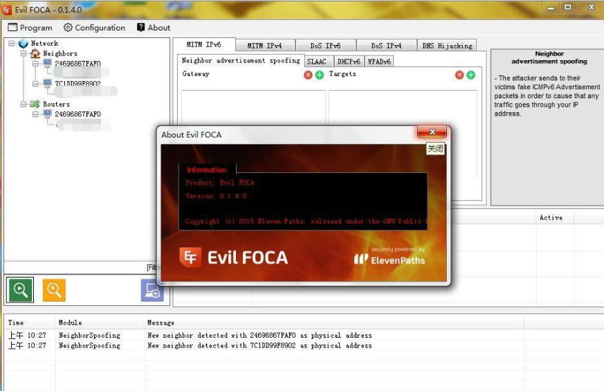 EvilFoca是Windows环境下基于.NET FrameWork的一款轻量级的劫持测试工具。与BackTrack和Kali_Linux下复杂的命令相比,EvilFoca更加小巧,轻便,简单,但其效果更加显著高效。