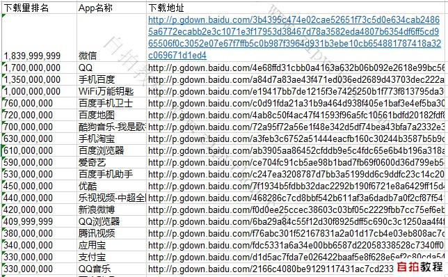 且市场部提供了某应用市场上的top 1000 的apk下载地址。