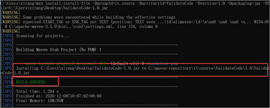 mvn install:install-file -DgroupId=it.source -DartifactId=ValidateCode -Dversion=1.0 -Dpackaging=jar -Dfile=C:\Users\xiyang\Desktop\ValidateCode-1.0.jar