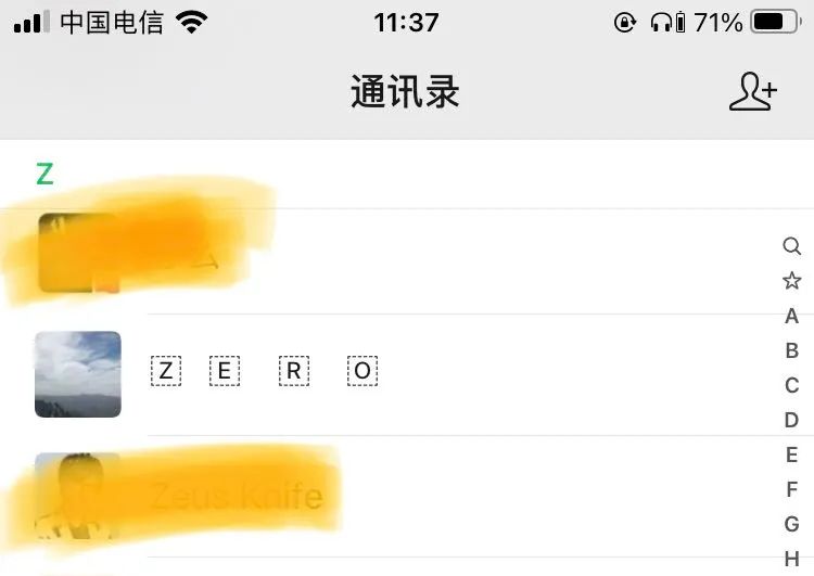 上面的图片是加好友页面的效果,在通讯录里的显示效果是下面所展示的样子