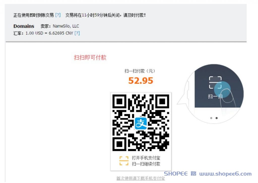 7、跳转到支付宝结账界面,用手机扫码即可。