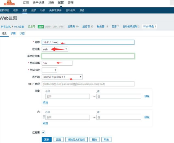 配置-主机-需要设置的主机-Web场景-创建Web场景