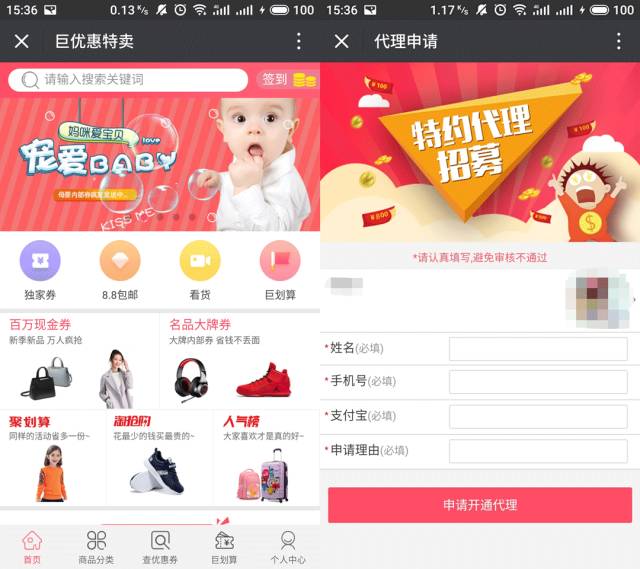 ⑤还可以兼职做代理加入我们一起分享优惠券赚钱。