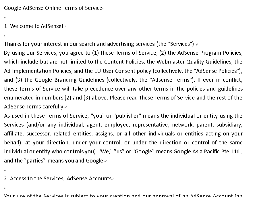 2、AdSense 在线服务条款(Google AdSense Online Terms of Service)