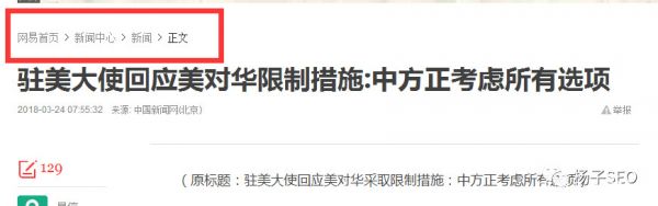 网易的内容页导航都是放置在标题的上方如下图所示: