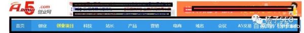 以上所述的导航方式在各种大型网站上基本都可以看见,当然了,对于中小型网站杨子建议也可以根据这个位置规划导航。下面以A5创业网为例来简单介绍下顶部导航的位置规划。