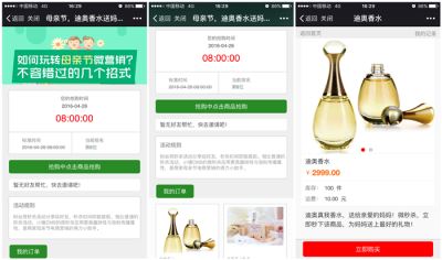 1. 微秒杀:粉丝将秒杀活动分享给好友,秒杀时间即能提前。商家可将针对中年女性消费者的商品作为活动商品,吸引粉丝积极参与。微秒杀具有极强的吸粉属性与传播属性,是商家母亲节电商营销的得力小助手。