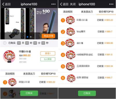 2. 微享宝微砍价:粉丝在商家规定的砍价时间内,将活动分享给好友,让好友帮忙砍价。砍掉的价格在商家设置的范围内随机生成。将具有吸引力的活动商品结合好玩的砍价方式,不仅能在节日为商家带来大量的涨粉,而且还能在朋友圈引起粉丝“共鸣”,带来商品的爆炸式传播效应。